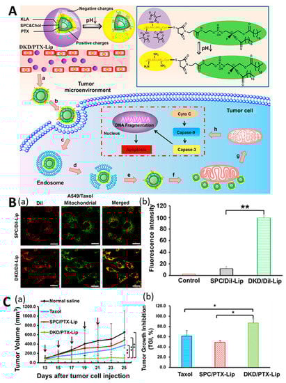 - Jiang, L.; Li, L.; He, X.; Yi, Q.; He, B.; Cao, J.; Pan, W.; Gu, Z. Overcoming Drug-Resistant lung cancer by paclitaxel loaded dual-functional liposomes with mitochondria targeting and pH-Response. Biomaterials 2015, 52, 126–139. [Google Scholar] [CrossRef] [PubMed]