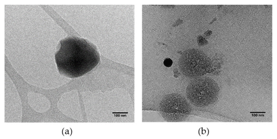 TEM images of (a) RES-NS and (b) OXY-NS.