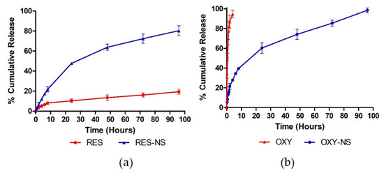 The release profile of (a) RES vs. RES-NS and (b) OXY vs. OXY-NS.