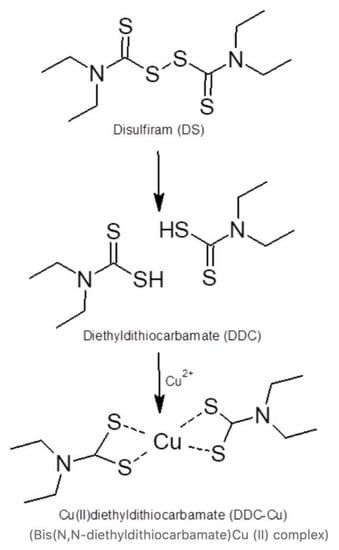 - Viola-Rhenals, M.; Patel, K.R.; Jaimes-Santamaria, L.; Wu, G.; Liu, J.; Dou, Q.P. Recent Advances in Antabuse (Disulfiram): The Importance of its Metal-binding Ability to its Anticancer Activity. Curr. Med. Chem. 2018, 25, 506–524. [Google Scholar] [CrossRef]