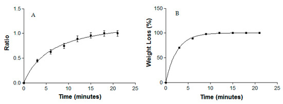 (A) Swelling ratio and (B) percentage of weight loss in the degradation of MA gel.