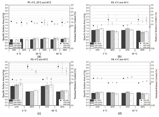 3.1.1. Residual Moisture Content and Specific Surface Area