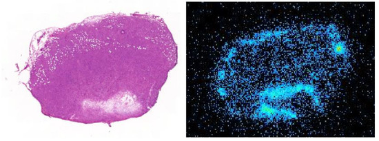 Histological and autoradiography image from 4T1 tumor slice collected at 4 h after [111In]In-DPEG-TOPSi administration.