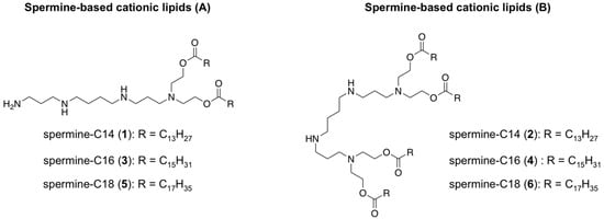 - Paecharoenchai, O.; Niyomtham, N.; Leksantikul, L.; Ngawhirunpat, T.; Rojanarata, T.; Yingyongnarongkul, B.; Opanasopit, P. Non-ionic Surfactant Vesicles Composed of Novel Spermine-Derivative Cationic Lipids as an Effective Gene Carrier In Vitro. AAPS PharmSciTech 2014, 15, 722–730. [Google Scholar] [CrossRef]