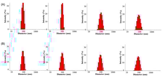 Particle size distribution of Pluronic F127 polymer micelles in 48 h (from left to right are 0 h, 6 h, 12 h, and 48 h, respectively).