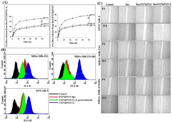 2.9. Cell Migration Efficacy of Dox/F127&P123-Tf