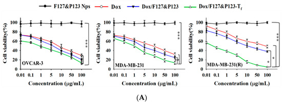 3.6. In Vitro Cellular Cytotoxicity of Dox/F127&P123-Tf