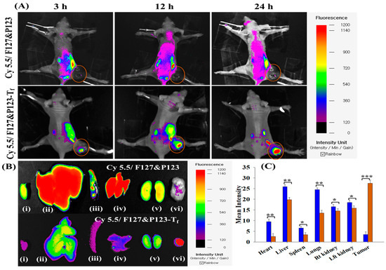 3.10. In Vivo Imaging and Biodistribution Analysis