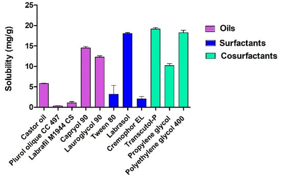 Solubility study of Donepezil (DPZ) in oils, surfactants, and cosurfactants.