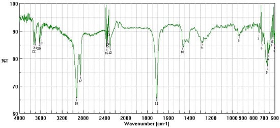 Here, 1.5 g of low molecular weight chitosan base (Sigma Aldrich, Milan, Italy) were wetted with 0.3 mL of acetic acid and 7.5 mL of ethanol. A few mL of ethanol were added, containing dissolved an amount of oleic acid calculated as 1:1 molar ratio with respect to chitosan theoretical free amino groups, taking into account the declared deacetylation degree (about 80%). Thus, 1.4 g of oleic acid were used per each g of chitosan. The solvents were evaporated in rotavapor at a mild temperature of 30–35 °C. The powder was collected, washed twice with a few mL of ethanol to remove the excess of oleic acid, and dried at room temperature. It was used without further purification. A FTIR analysis of the obtained CS-OA was performed by means of a FTIR-4100 apparatus (Jasco Corporation, Cremella, Lecco, Italy).