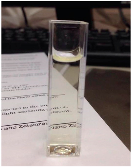 Appearance of microemulsion containing sesame oil, PEG400, Tween80 and water.