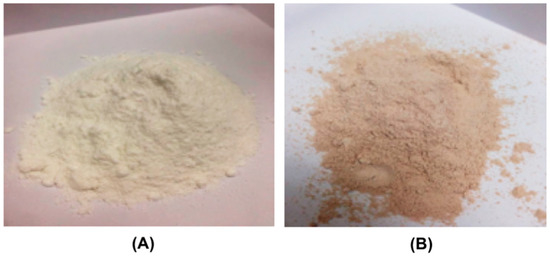 Appearance of albendazole self-microemulsifying chewable tablets: (A) microemulsion absorbed from colloidal silica and (B) albendazole self-microemulsifying granules.