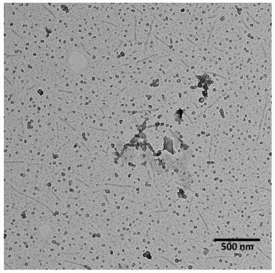 The morphology of the micelles was observed by transmission electron microscopy (TEM; Tecnai F20 TWIN microscope, FEI Company, Hillsboro, OR, USA. The microscope is equipped with a field emission gun (200 kV). Images were recorded on the Eagle 4k HS camera (FEI Company, Hillsboro, OR, USA) and processed with TIA software (FEI Company, Hillsboro, OR, USA). The micellar solution was filtered through a 0.85-μm filter and placed on a copper grid covered with carbon film and stained negatively (with the use of 2% phosphotungstic acid (PTA)) and air dried at room temperature before measurements.