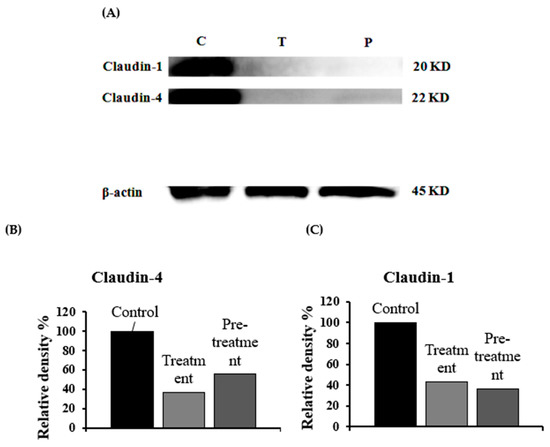 3.5. Estimation of Claudin Proteins by Western Blotting