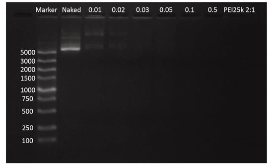 Agarose gel electrophoresis of the GPEI-pDNA polyplexes.