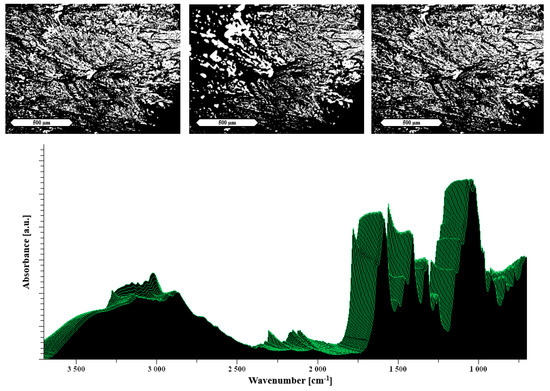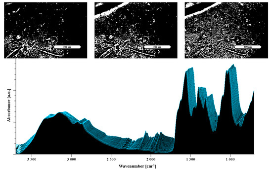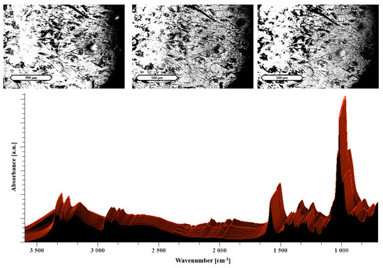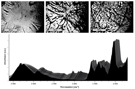 Thus, Figure 4 top shows an increasing number of capillaries building up in the polyelectrolyte film containing arginine, which can be directly associated with the positive extrusion performance. In this case, even though the HSM suggests a successful extrusion, as highlighted in the previous section, the arginine extrudate still contained crystallinity. This could be explained by the insufficient mixing behavior of the two excipients, which is underlined by the minimal changes visible in the heat-resolved FTIR. In Figure 4 bottom, only minor changes in the FTIR are visible during the heating.
