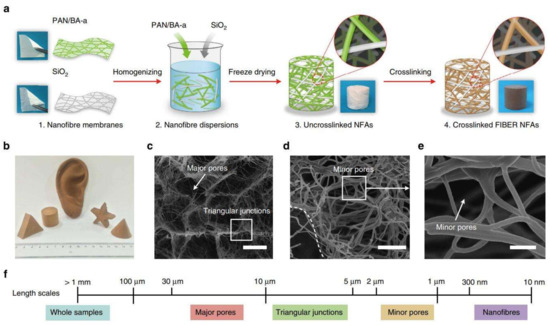 92. Si, Y.; Yu, J.; Tang, X.; Ge, J.; Ding, B. Ultralight nanofibre-assembled cellular aerogels with superelasticity and multifunctionality. Nat. Commun. 2014, 5, 5802. [Google Scholar] [CrossRef]
