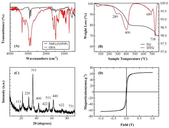 3.2. Characterization of MnFe2O4 MNPs