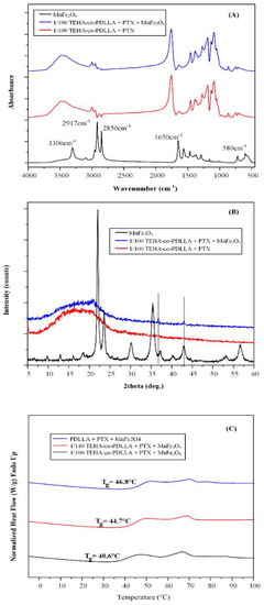 - Filippousi, M.; Papadimitriou, S.A.; Bikiaris, D.N.; Pavlidou, E.; Angelakeris, M.; Zamboulis, D.; Tian, H.; Van Tendeloo, G. Novel core–shell magnetic nanoparticles for Taxol encapsulation in biodegradable and biocompatible block copolymers: Preparation, characterization and release properties. Int. J. Pharm. 2013, 448, 221–230. [Google Scholar] [CrossRef]