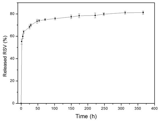 In vitro release profile of RSV at pH 5 and 37 °C under dark conditions.