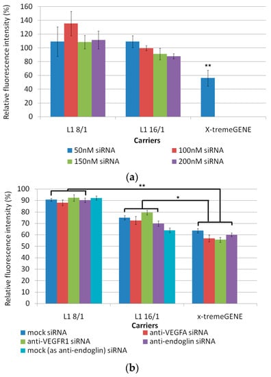 3.1. Cytotoxicity Evaluation of L1 Peptide/siRNA Complexes