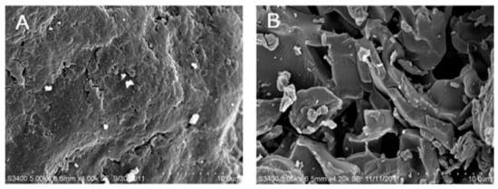 Surface morphology of (A) non-FPM-based matrix and (B) FPM-based matrix, observed using scanning electron microscopy (SEM).