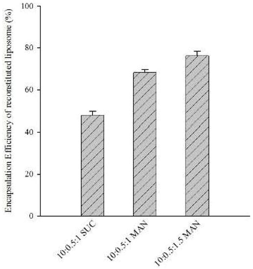 2.4. Physicochemical Properties of Reconstituted Liposomes