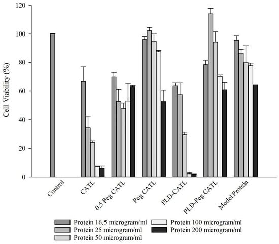| 0.5% PEG CATL | 268.3 ± 13.5 | 2639.7 ± 341.1 | 0.34 ± 0.13 | 0.34 ± 0.13 | 21.9 ± 1.2 | 88.3 ± 0.4 * | 29.4 ± 0.1 * |