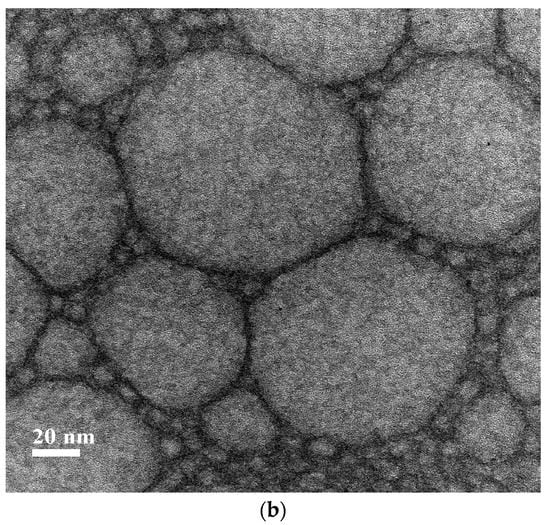 Representative TEM images of the optimized Ucuùba fat NLC formulations (a) F 30 and (b) F 85 (magnification 100,000×).