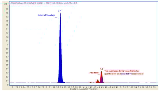 The representative SRM chromatograms for PTX drug free released by silk fibroin-based nanoparticles are reported in Figure 2.