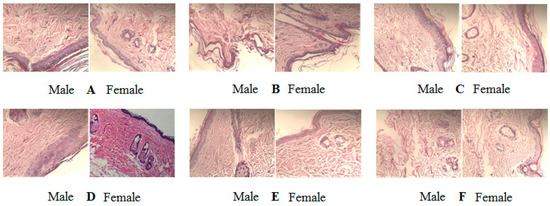 The tissue sections of treated rats were stained to further study histology changes of the skin by H&E staining. The results are shown in Figure 5.