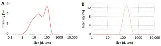 Particle size distributions of (A) CLX crude powder and (B) optimized CLX-NC.
