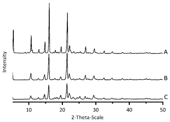 PXRD patterns were collected using D8 Advance diffractometer (Bruker, Karlsruhe, Germany) with Cu-Ka radiation (1.5406 Å) operated at 36 kV and 20 mA. Data were obtained in the range of 5–50°(2θ) at 1.5°/min with a step of 0.04°.