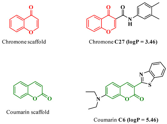Chemical structures of chromone C27 and coumarin C6. The values of logP were obtained from the literature [5,9].