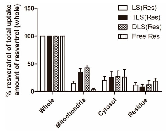 Intracellular uptake of LS (Res), TLS (Res), DLS (Res) and free resveratrol by B16F10 cells after 1 h of incubation. The data represent the mean ± S.E.M (n = 3).