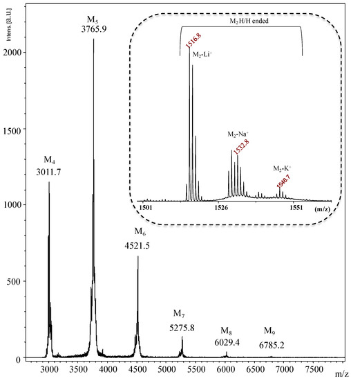 3.3. MALDI-TOF Mass Spectrometry Characterization
