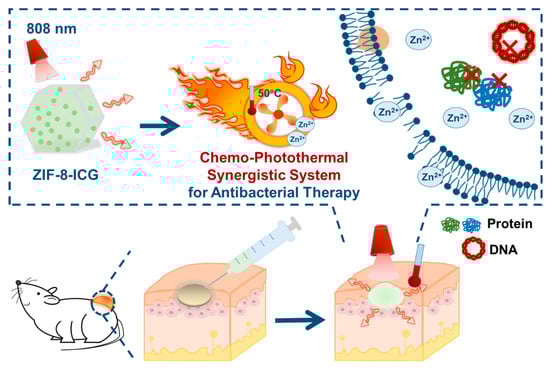 3.3. In Vitro Antibacterial Property of ZIF-8-ICG