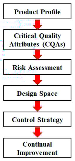 In order to encourage pharmaceutical industries to develop and implement innovations, the USA Food and Drug Administration (FDA) launched Quality by Design (QbD) initiatives [4,5], which aims to create an effective and flexible environment to consistently deliver quality products without oversight regulation. QbD is defined as “a systematic approach to development that begins with predefined objectives and emphasizes product and process understanding and process control based on sound science and quality risk management” [4]. According to QbD principles, the quality should be “built into” but not “tested into” the product [5] through a comprehensive understanding of the relationships between the critical material attributes (CMAs), the critical process parameters (CPPs) and the critical quality attributes (CQAs), and through effective controls on the variability. The ultimate objective of QbD is to promote a faster product and process development and to increase the manufacturing flexibility and process robustness to reduce production costs.