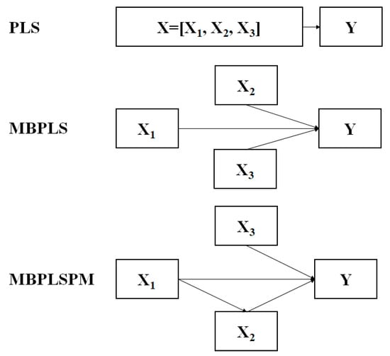 The schematic diagram of the partial least squares (PLS), multi-block partial least squares (MBPLS), and multi-block partial least squares path model (MBPLSPM) algorithm.