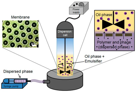 Schematic representation of the membrane emulsification system used for microencapsulation of bacteriophages.