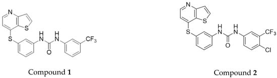 - Machado, V.A.; Peixoto, D.; Queiroz, M.-J.; Soares, R. Antiangiogenic 1-aryl-3-[3-(thieno[3,2-b] pyridin-7-ylthio)phenyl]ureas inhibit MCF-7 and MDA-MB-231 human breast cancer cell lines through PI3K/Akt and MAPK/Erk pathways. J. Cell. Biochem. 2016, 117, 2791–2799. [Google Scholar] [CrossRef] [PubMed]