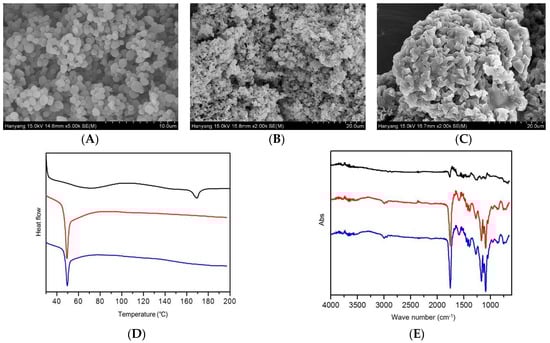 The thermograms of electrosprayed microspheres, leuprolide powder, and PLGA including RG502 and RG502H were measured by DSC (DSC Q20; TA Instruments, New Castle, DE, USA). The nitrogen gas flowed at 25 mL/min as purge gas. The samples were heated from 20 to 200 °C at a heating rate of 10 °C/min.