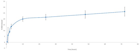 In vitro release curve (%) of the encapsulated NGB transferred by the NGB–NPs in the function of time (over 72 h) in the study.