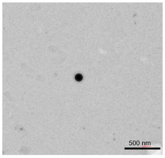 Once the lyophilization of NGB was evaluated, we proceeded to lyophilize the NPs alone to study its stability. To achieve this goal, the size and morphology of NPs were assessed by microscopy. No significant changes in size were appreciated after the lyophilization process, as very similar values were found with or without lyophilization (Table 5). Regarding TEM analysis, Figure 6 shows a representative image of a NP showing how the NPs maintained its constitution after lyophilization with a spherical and defined shape, showing once more no substantial changes as a consequence of this procedure.