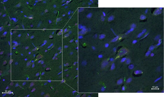 3.4. In Vivo Studies: Penetration of NGB–NPs into the Cerebral Parenchyma