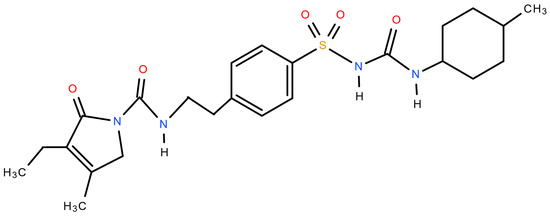 - Matsuki, M.; Matsuda, M.; Kohara, K.; Shimoda, M.; Kanda, Y.; Tawaramoto, K.; Shigetoh, M.; Kawasaki, F.; Kotani, K.; Kaku, K. Pharmacokinetics and pharmacodynamics of glimepiride in type 2 diabetic patients: Compared effects of once- versus twice-daily dosing. Endocr. J. 2007, 54, 571–576. [Google Scholar] [CrossRef]