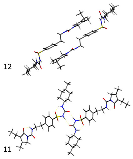 Illustration of the two strongest interacting dimers (11 and 12) in the crystal lattice of glimepiride.
