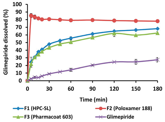 Dissolution profiles of pure glimepiride and spray dried nanosuspensions are shown in Figure 10.