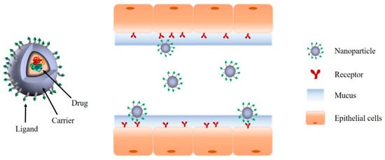 For a more effective local treatment of colonic disease with reduced toxic side effects, ligand/receptor-mediated systems have been explored that increase target specificity via the interaction between targeting ligands on the carrier surface and specific receptors expressed at disease sites (Figure 3) [85]. Ligand/receptor-mediated system can be designed using various ligands (e.g., antibodies, peptides, folic acid, and hyaluronic acids) selected based on the functional expression profiles of specific receptors/proteins at the target cells/organs. It can be also combined with pH-dependent systems to maximize its GI stability and site specificity, if needed. Some of the ligands used in colon specific delivery are as described below.