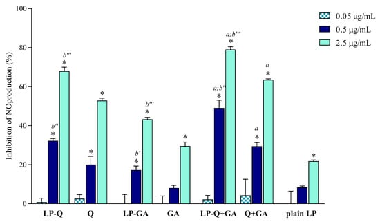 The capability of liposomes to inhibit nitric oxide (NO) production in LPS-induced macrophages was evaluated as previously described and expressed as anti-inflammatory activity [37].